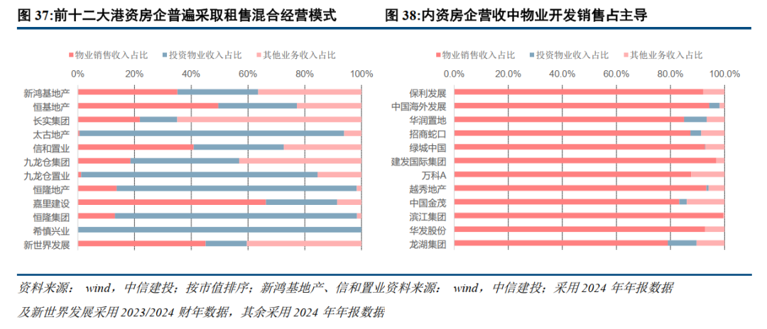 智通财经APP获悉,中信建投证券发布研报称,香港地狭人稠,可利用土地不足,住房矛盾较为突出;政府通过市场轨和保障轨双轨并行的住房供应体系来缓解住房压力。当前在恒指回升与港府“撤辣”的共同作用下,香港房地产市场出现止跌回稳势头。港资房企的业务多呈租售混合的特点,租赁收入的贡献在5成左右;部分多元化业务亦可反哺主业产生协同,这使得港房在财务层面实现了低杠杆、低周转、高利润率的稳健且高质量的发展特征。香港REITs历经5年回撤后企稳回升,发行人主动管理能力较强,可进行全球范围的资产收购和处置。