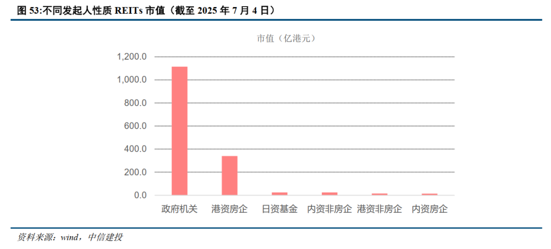 香港REITs:历经下行后企稳回升,主动管理打造资管业务平台。香港REITs市场现存个券11只,总市值达1575.6亿港元,其中5只由港资房企发起。香港REITs经历5年的下行周期,目前已进入企稳回升阶段。发起人将香港REITs作为不动产资管平台,在全球范围内进行资产收购和处置。