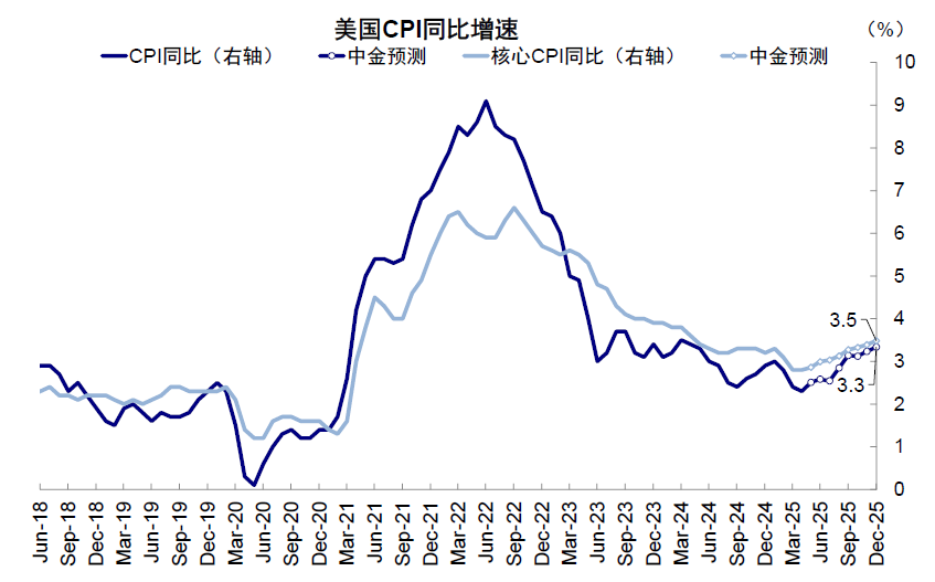图表:7-8月通胀因基数和关税价格传导或还会有一小波抬升