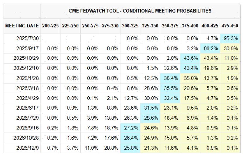 图表:CME利率期货隐含美联储或将于9月降息