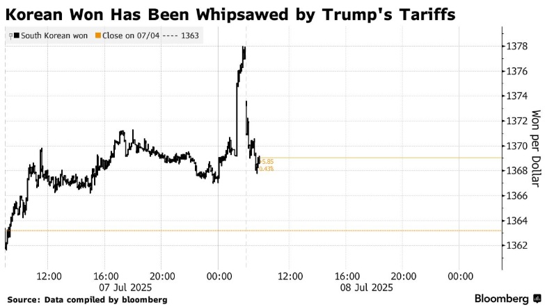 特朗普首先宣布拟对日本和韩国商品加征25%关税。随后,更多国家被波及,陆续提出对南非、印度尼西亚、泰国和柬埔寨等美国贸易伙伴的货物加税计划。