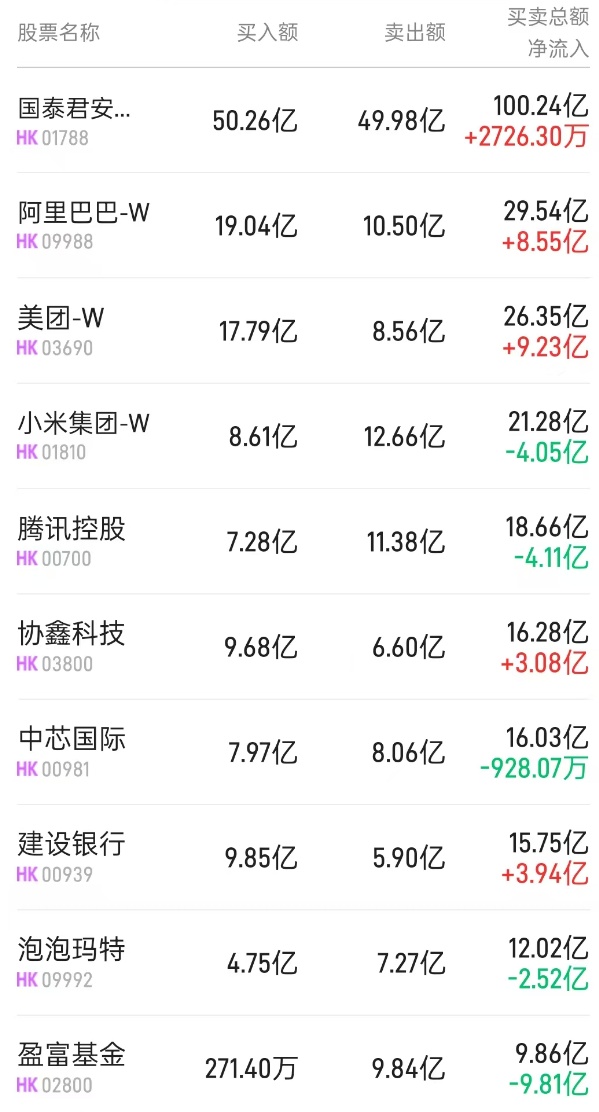 阿里巴巴-W(09988)、美团-W(03690)分别获净买入14.1亿、11.31亿港元。消息面上,近期外卖大战进入白热化,淘宝闪购近日宣布启动500亿元补贴计划,随后美团迅速推出"满25减24"等大额无门槛优惠券应战。高盛认为,与电商玩家以往在几个季度过后就缩减投资规模的做法不同,此次投资的持续时间或将更长,因为所有企业的关注重点都转向成为中国商品和服务交易的“日常应用”。