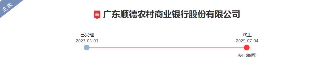 智通财经APP获悉,7月4日,广东顺德农村商业银行股份有限公司(简称:顺德农商银行)深交所IPO审核状态变更为“终止(撤回)”。因顺德农商银行、保荐人撤回发行上市申请,根据《深圳证券交易所股票发行上市审核规则(2024年修订)》第六十二条,深交所决定终止其发行上市审核。公司IPO保荐机构为中国国际金融股份有限公司,拟融资金额90亿元。