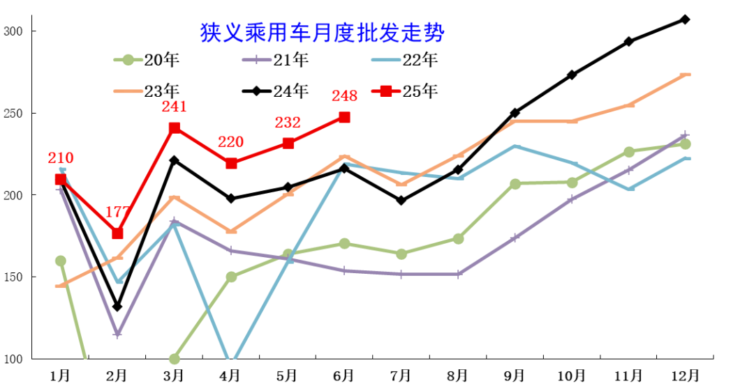 6月全国乘用车厂商批发248万辆,创当月历史新高,且6月销量高于3月,主要是零售和出口增速改善,而企业半年冲刺力度较温和。6月的增速表现很强,实现15%的高增长。
