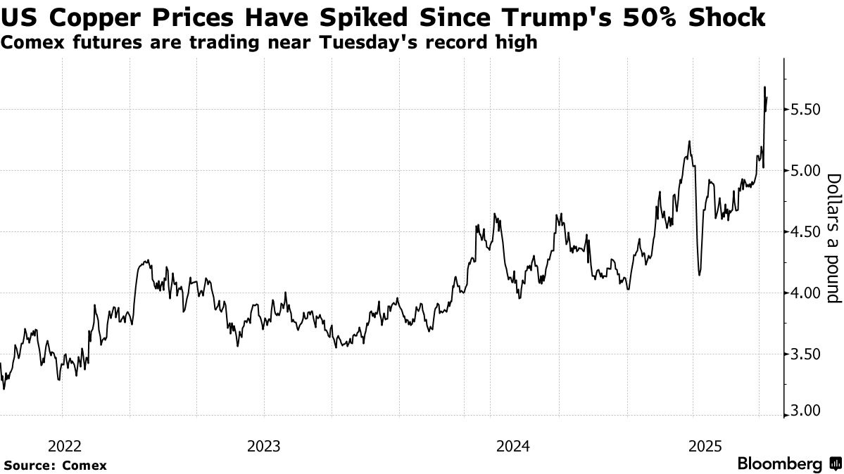 智通财经APP获悉,美国总统特朗普当地时间周三确认,将从8月1日起对铜进口正式征收50%的高额关税,此举被视为其推动本土金属产业复兴的最新举措。特朗普在周二接受媒体采访时已提前释放信号,次日通过社交平台进一步明确关税生效日期,并批评前几届政府导致美国铜市场影响力衰退。他强调:"这项50%的关税将扭转拜登政府的轻率决策,美国必须重建主导性的铜产业。"