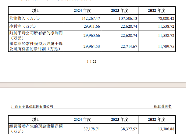 招股书显示,百菲乳业主要从事乳制品和含乳饮料的研发、生产与销售,产品包括以生水牛乳、生牛乳为主要原料的灭菌乳、调制乳、发酵乳、巴氏杀菌乳和含乳饮料等。公司立足于“中国奶水牛之乡”广西钦州市灵山县,充分发挥地域优势,加强优质奶源基地建设、完善产业链布局,以市场为导向,积极开发新产品、新技术、新工艺,形成了以水牛乳制品为特色的产品矩阵。