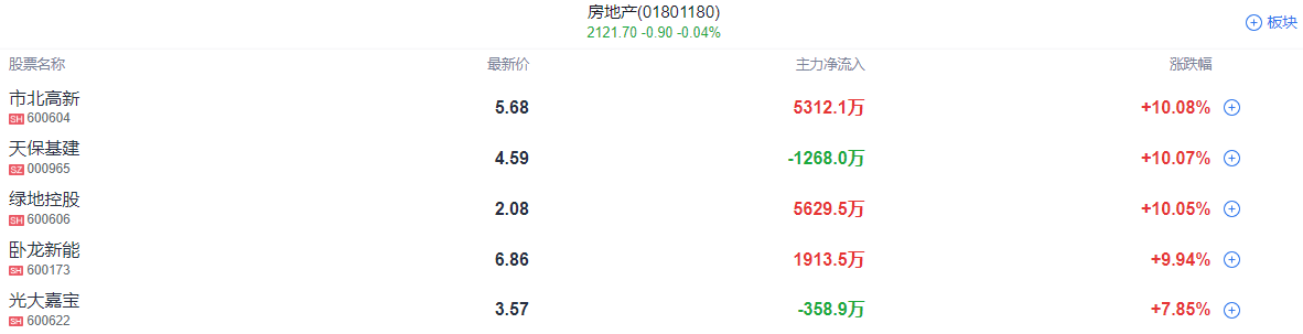地产股再度走强,市北高新、天保基建、绿地控股涨停,渝开发、华夏幸福等跟涨。
