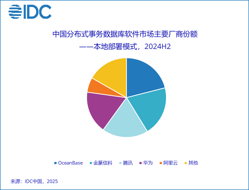 2024年下半年中国分布式事务数据库数据库软件市场本地部署模式主要厂商份额情况如下: