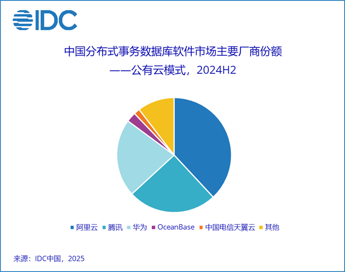 2024年下半年中国分布式事务数据库数据库软件市场公有云模式主要厂商份额情况如下: