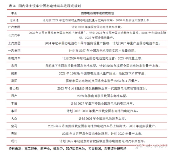 丰田、本田、大众、宝马、奔驰、现代等德日韩车企,大多计划在2027年左右实现全固态电池装车上市。