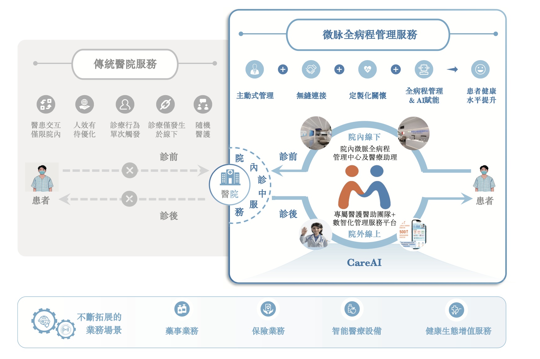 因此,全病程管理服务正成为医疗AI实施的核心基础。在全病程管理服务中,AI技术支持患者 全病程中的多项关键医疗功能—从初始风险评估及数字分诊到治疗协调及长期监测。 该等能力不仅提升营运效率与个性化程度,更促进患者在院内多种医疗场景中的持续参与。