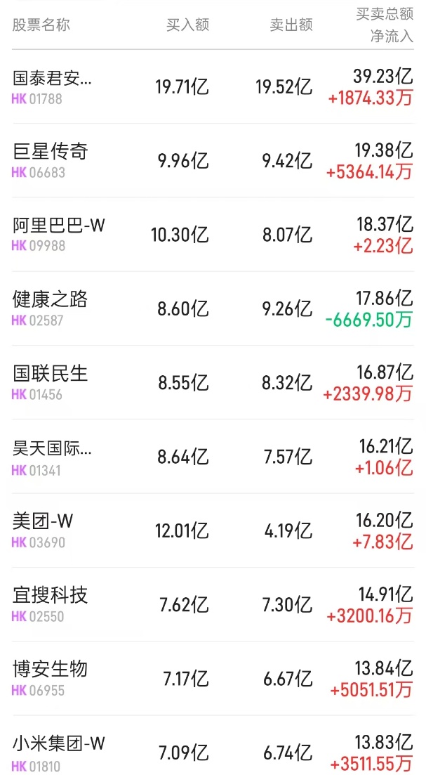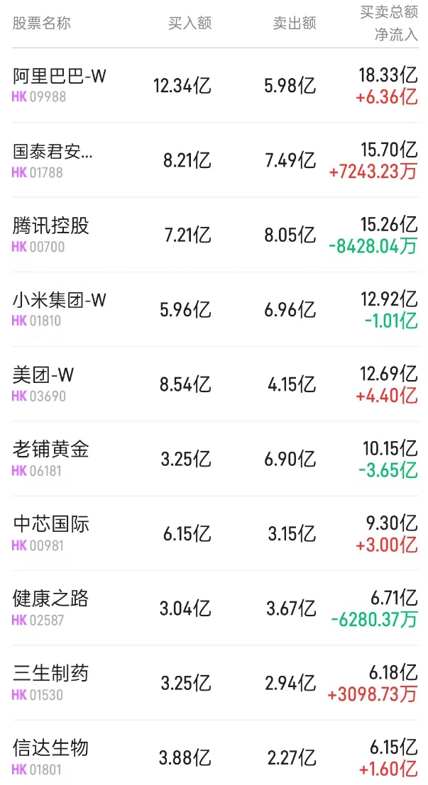 此外,昊天国际建投(01341)、国泰君安国际(01788)、宜搜科技(02550)分别获净买入1.06亿、9117万、3200万港元。而腾讯(00700)、小米集团-W(01810)分别遭净卖出8428万、6570万港元。
