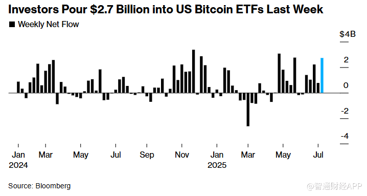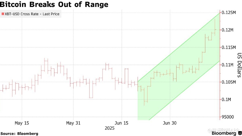 这与前段时间的情况形成鲜明对比。数月以来,比特币一直维持在狭窄的波动区间内,因为投资者们正应对贸易紧张局势,而且一些曾经的大买家也纷纷抛售。但比特币的倡导者们却坚持持有,与此同时,加密货币交易所交易基金(ETF)再次蓬勃发展,以Strategy(MSTR.US)为首的金融公司已承诺购买数十亿美元的比特币。