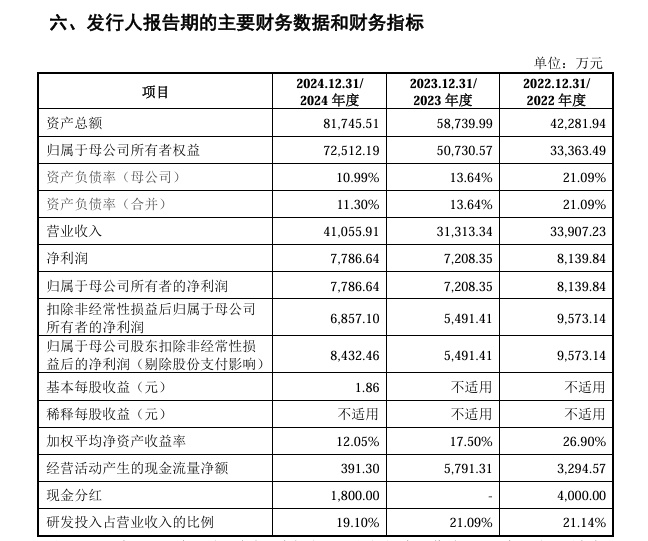 财务方面,于2022年度、2023年度、2024年度,优迅股份实现营业收入分别约为3.39亿元、3.13亿元、4.11亿元人民币;同期,净利润分别约为8139.84万元、7208.35万元、7786.64万元人民币。