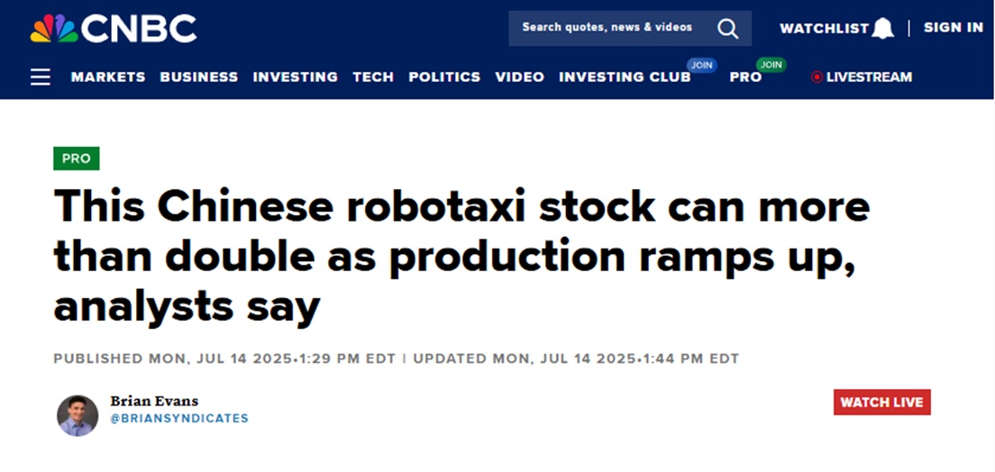 智通财经APP获悉,据美国主流财经媒体CNBC于当地时间周一报道,高盛、美国银行等多家外资大行近期陆续发布研究报告,对自动驾驶行业领军企业小马智行(PONY.US)表示看好。报告指出,在Robotaxi加速量产的支撑下,小马智行股价未来可能出现显著上涨。