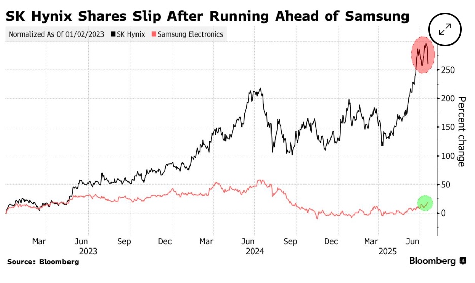 作为英伟达(NVDA.US)高带宽内存(HBM)芯片的主要供应商,SK海力士近年受益于人工智能产业热潮,股价实现大幅攀升。尽管三星在获取英伟达HBM芯片认证方面暂时落后,但市场仍在密切关注其技术追赶进度,若三星成功缩小差距,SK海力士的利润空间或将承压。