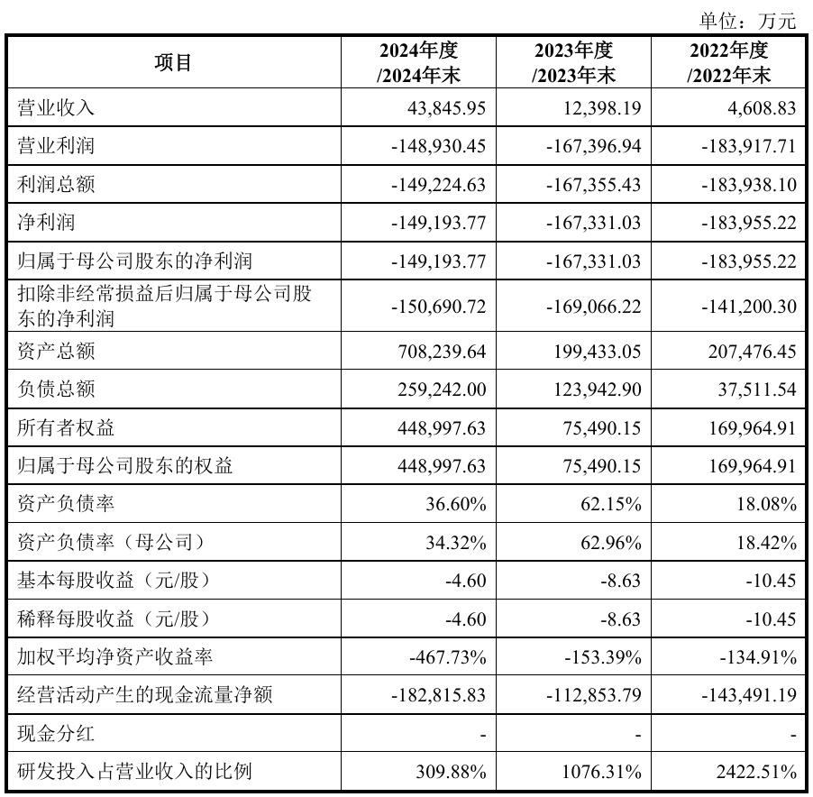 财务方面,于2022年度、2023年度、2024年度,摩尔线程实现营业收入分别约为4608.83万元、1.24亿元、4.38亿元人民币;同期,净利润分别约为-18.4亿元、-16.73亿元、-14.92亿元人民币。