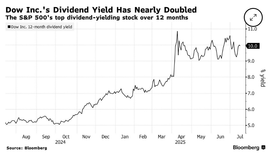 美国国债市场动态也为高股息资产添了一把火。除最长期限品种外,多数美债收益率已从两年前峰值回落。美联储为抑制通胀实施的激进加息周期曾推高收益率,但近期市场进入震荡期,投资者正密切关注政策转向信号。在此背景下,化学巨头陶氏化学(DOW.US)等高股息企业备受青睐,其当前股息收益率接近10%,较去年水平翻倍。