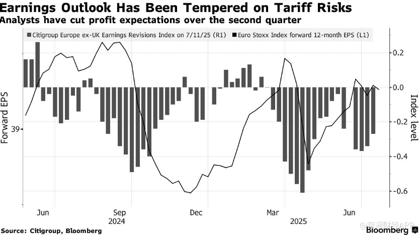 根据Bloomberg Intelligence汇编的数据,分析师预计欧洲MSCI指数成分股公司第二季度盈利将下降4.8%,为2024初以来的最大同比降幅。
