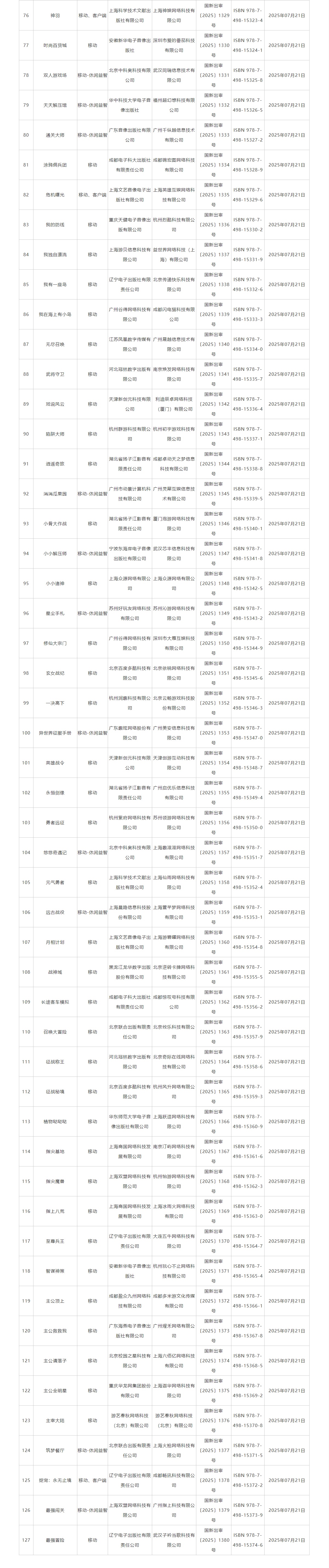 智通财经APP获悉,7月22日,国家新闻出版署公布2025年7月份国产网络游戏审批信息,7月共127款国产网络游戏获批。其中包括《阿尔法契约》、《艾瑟隆大冒险》、《爱玩拼图》等。