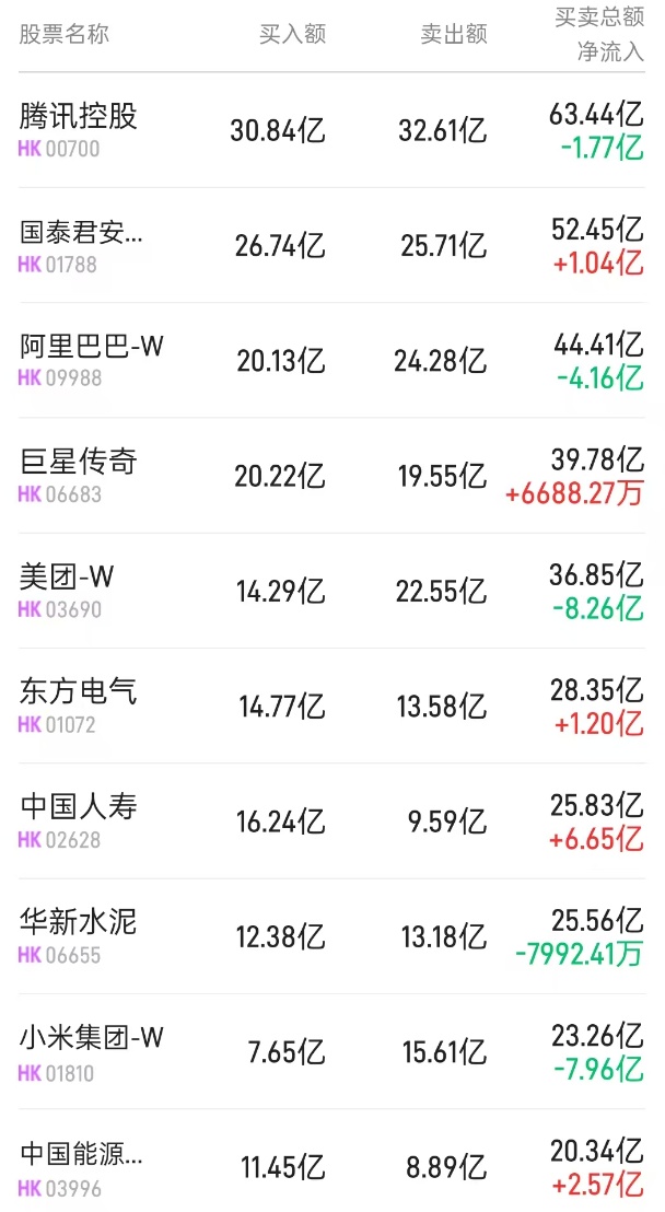 此外,巨星传奇(06683)、国泰君安国际(01788)分别获净买入8917万、3750万港元。而小米集团-W(01810)遭净卖出9.83亿港元。