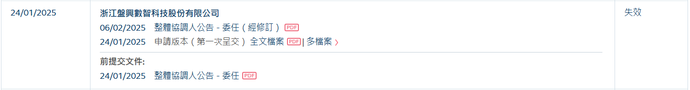 智通财经APP获悉,浙江盘兴数智科技股份有限公司(简称:盘兴数智)于2025年1月24日所递交的港股招股书满6个月,于2025年7月24日失效,递表时浤博资本为其独家保荐人。