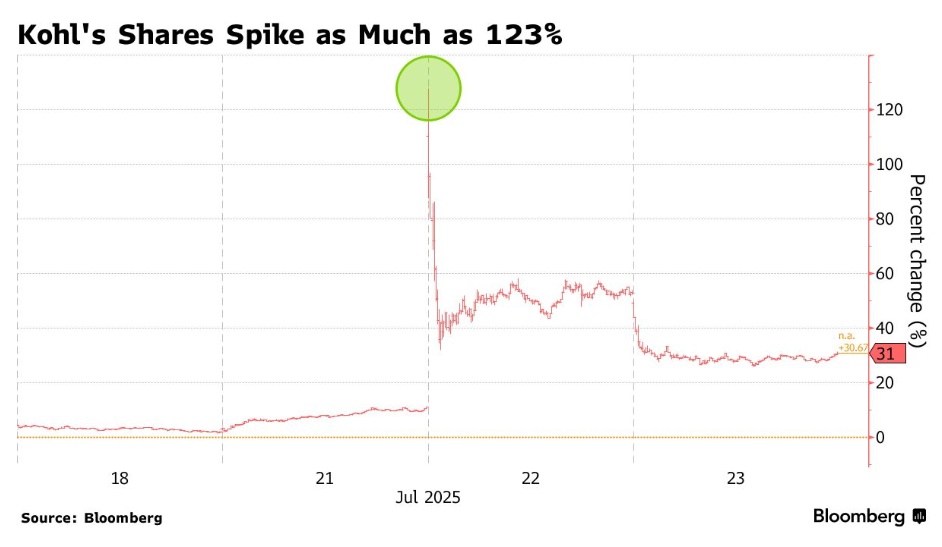 这场投机盛宴很快蔓延至更多低市值股票。陷入困境的零售商科尔百货(KSS.US)因空头头寸占自由流通股48%成为焦点,周二股价单日暴涨38%后,周三盘中又出现14%的剧烈回调。