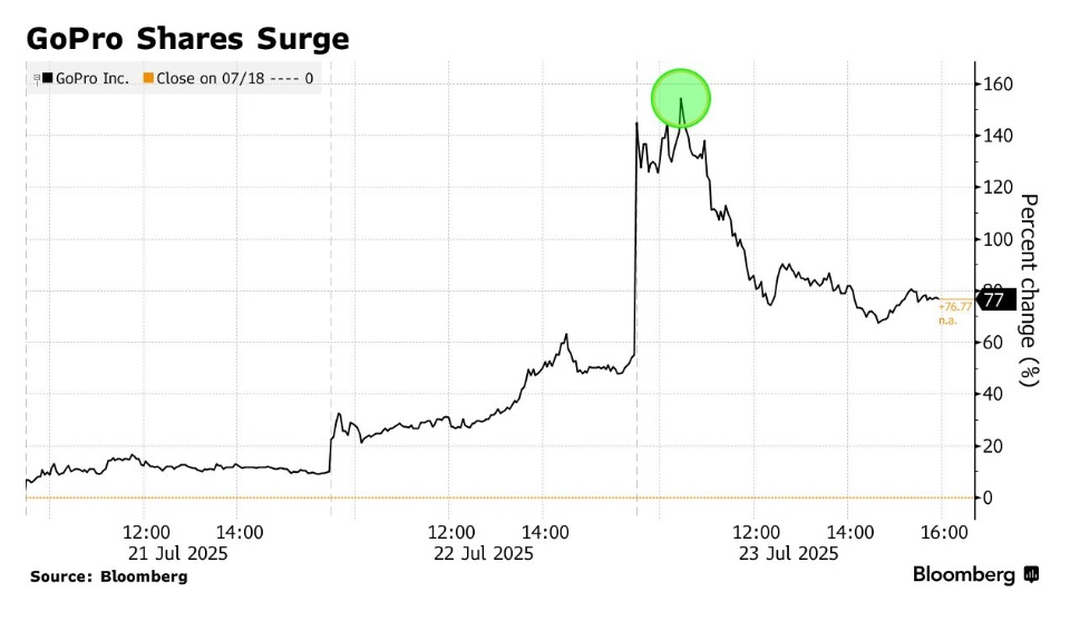 这场投机盛宴的持续性正受到考验。Krispy Kreme周三从35%涨幅回落至4.6%,Opendoor连续两日回调,GoPro周三收盘涨幅收窄至12%,均显示当前涨势存在不稳定特征。
