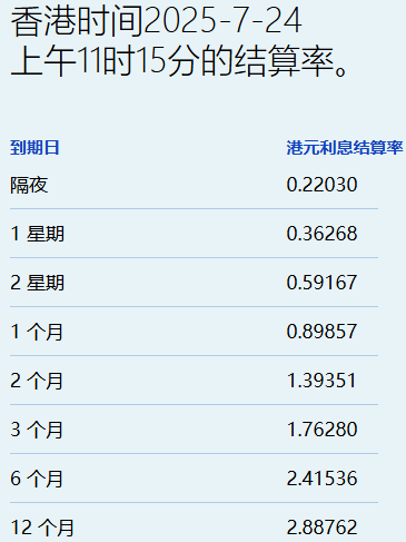 智通财经APP获悉,7月24日,港元拆息个别发展,而与楼按相关的一个月拆息报0.89857%终止两日连升,跌3.96基点,是7月4日后最低;反映银行资金成本的三个月拆息报1.7628%,跌1.821基点。