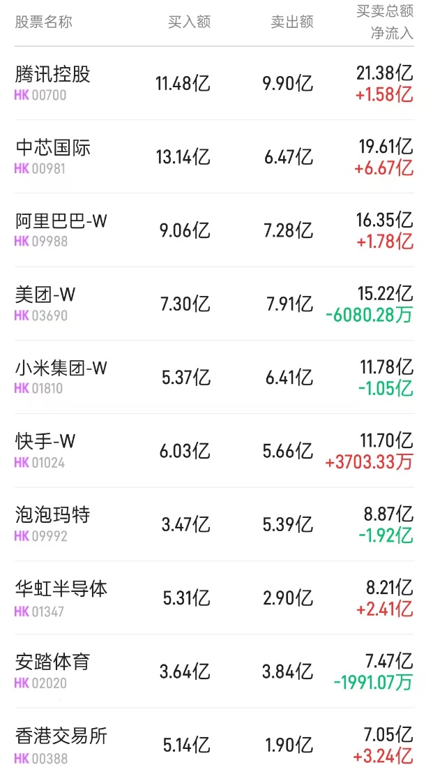 港交所(00388)获净买入3.24亿港元。消息面上,美银证券发表报告,预期港交所上半年纯利为80亿港元,同比上升31%。日均成交额预计维持在2380亿港元的高水平,支持强劲的交易费收入和结算费收入。第二季唯一出现按季跌幅的可能是利息收入,受到HIBOR突然下滑的影响,但该影响被手续费收入的增长所抵销。该行将港交所目标价由440港元上调至520港元,重申“买入”评级。