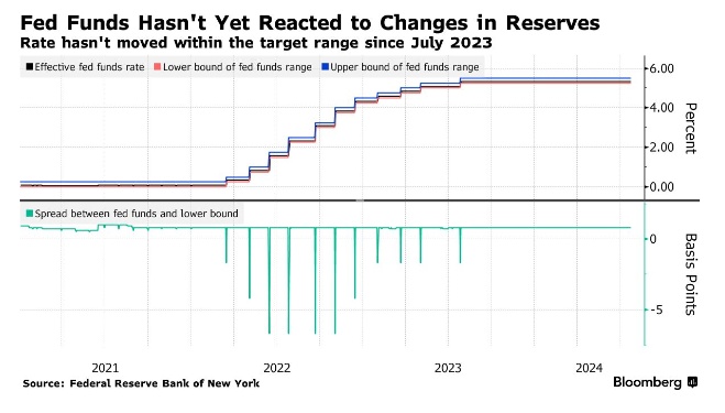 Perli此前曾表示,联邦基金利率只是众多指标之一,其他还包括国内借款和银行日内透支等。但在3月的一场活动中,Perli承认,该利率对准备金的日常变化没有反应,且有证据表明回购市场的压力正逐渐增大。