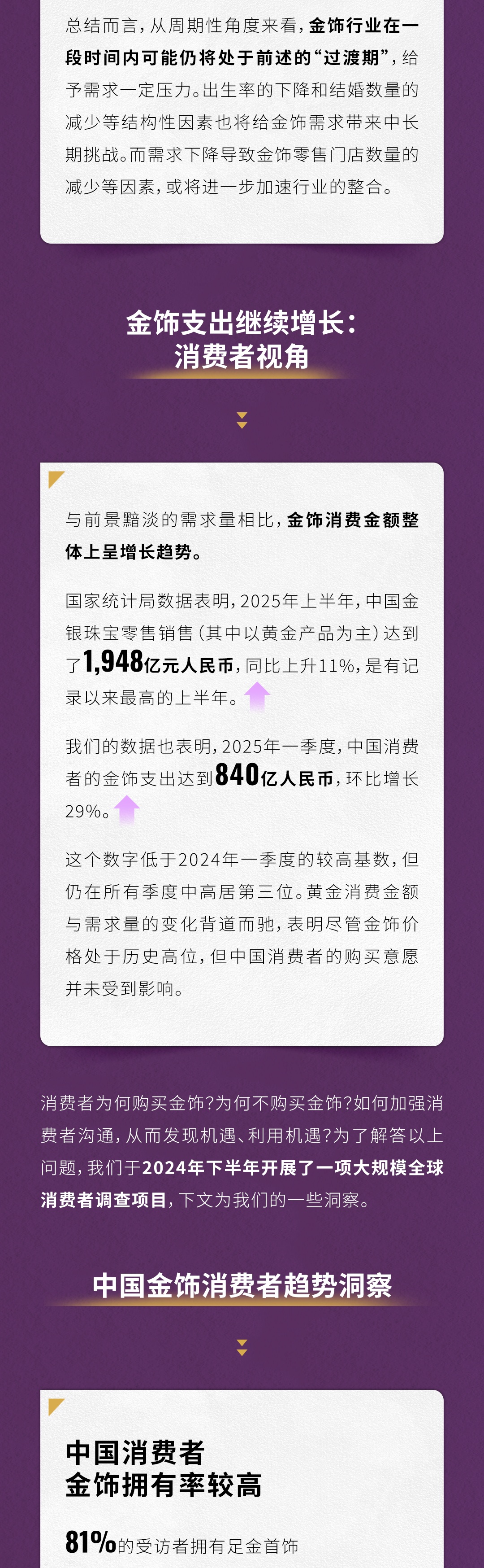 智通财经APP获悉,近日,世界黄金协会时隔五年发布了最新版《中国金饰消费者趋势洞察》。展望未来,金饰市场仍有增长空间。关于金饰市场趋于饱和的担忧已引起零售商的关注。确实,该协会的调研显示80%以上的中国消费者拥有金饰,同时,年轻消费者群体的拥有率也显著提升。但同样不容忽视的是无论之前是否购买过金饰,高达60的受访者表示有意在未来12个月内(自实地调研日期起)购买金饰,而且大多数人会为自己购买。