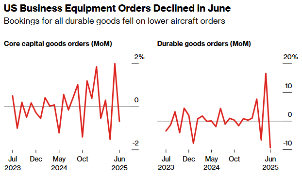 这些数据反映了第二季度的情况,在此期间设备采购方面的支出可能较年初因航空相关投资激增推动的大幅增长而大幅放缓。年初时的这一投资增长是自 2020 年以来规模最大的一次。美国政府将于下周公布第二季度GDP的初步估算数据。