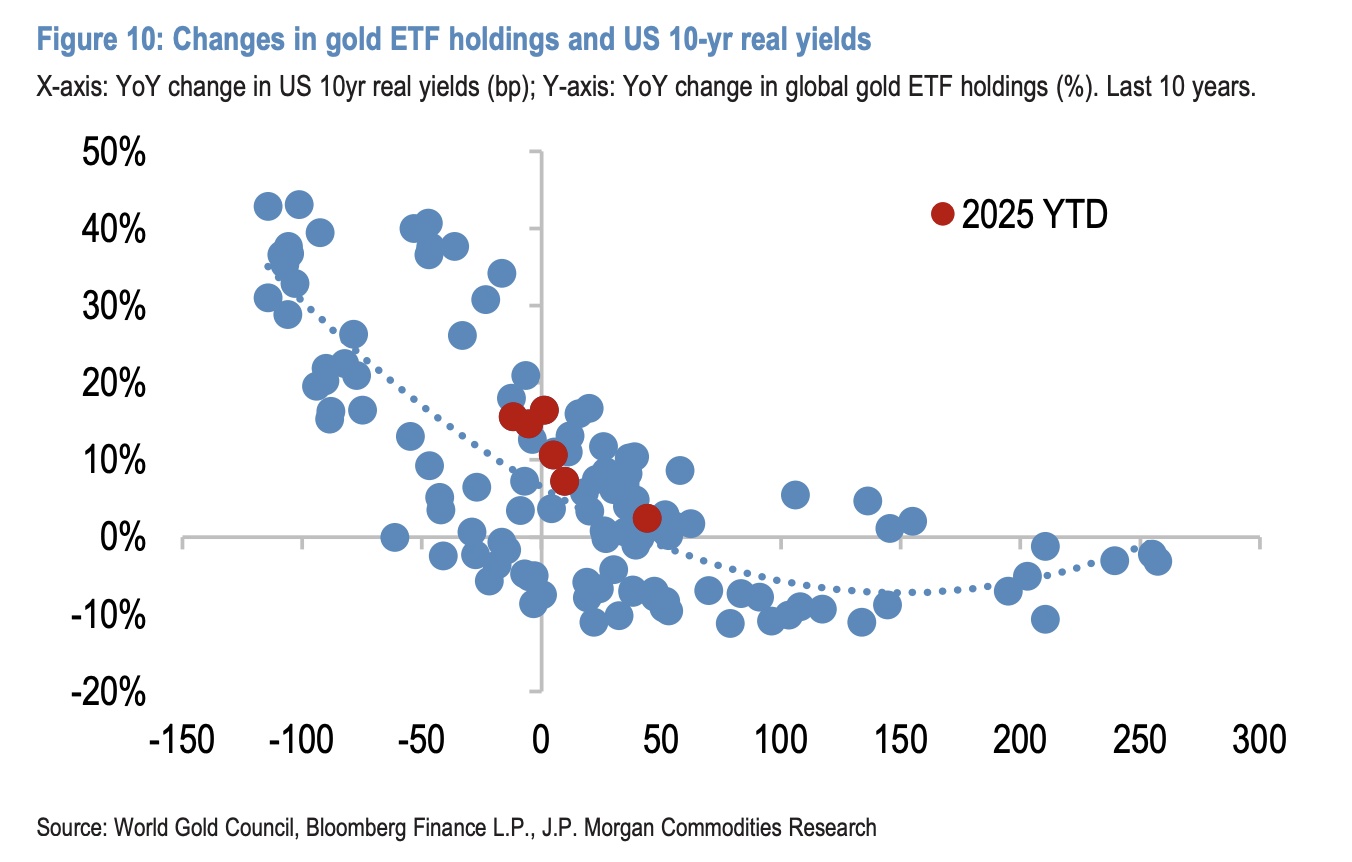 摩根大通的金价预测假设今年全球黄金ETF持有量净增加715吨(+22%),这是推动金价在明年初达到4000美元/盎司的关键因素之一。