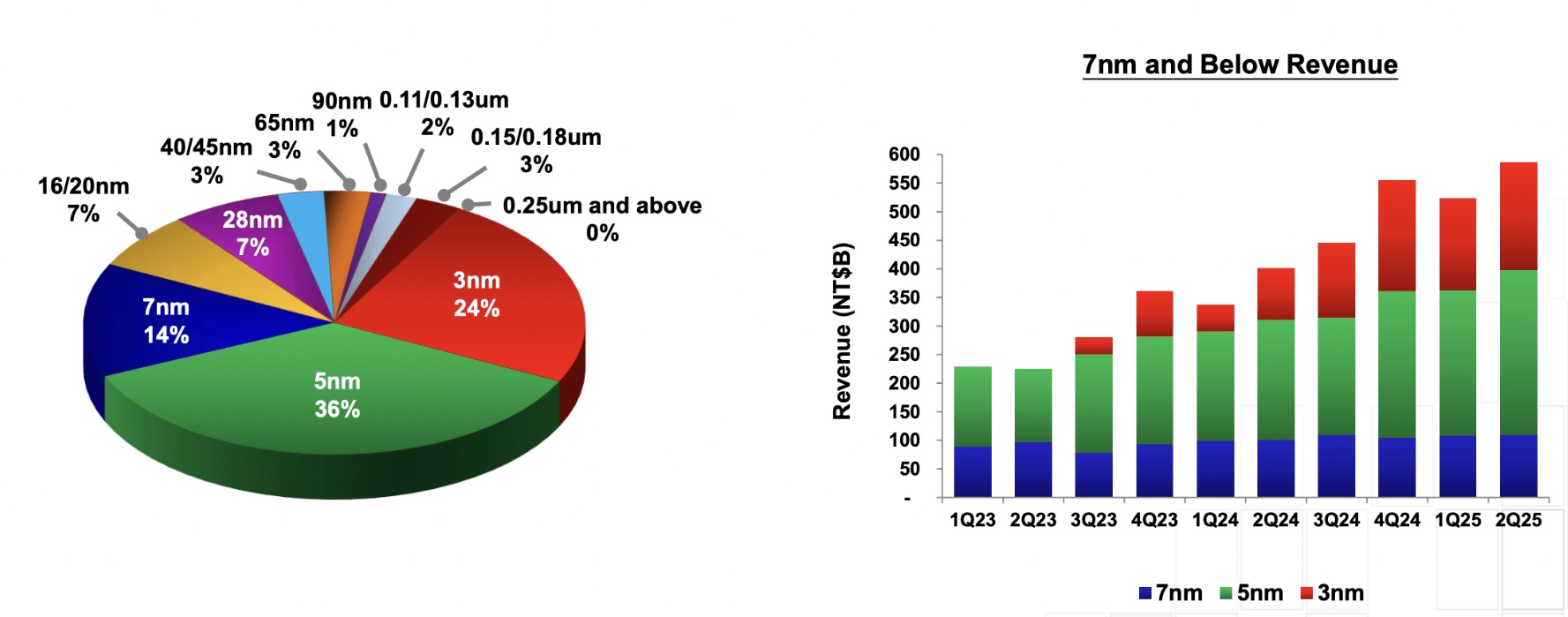 细分领域表现显示,台积电正通过尖端制程持续拓展业务。本季度24%的收入来自3纳米工艺,36%来自5纳米工艺;7纳米工艺虽占比有所下降,但实际收入保持平稳。依托现有晶圆厂产能,公司在维持其他制程收入稳定的同时,尖端技术收入持续增长。