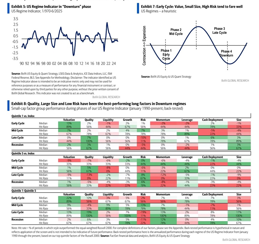 反思行情可持续性:对于这轮由低质量因子主导的中小盘反弹,美银策略师团队持审慎态度。他们强调,小盘股内的低质量行情往往难以持久。历史上,质量差的公司偶有阶段性领涨,但多数持续时间很短,最终市场重回基本面主导。