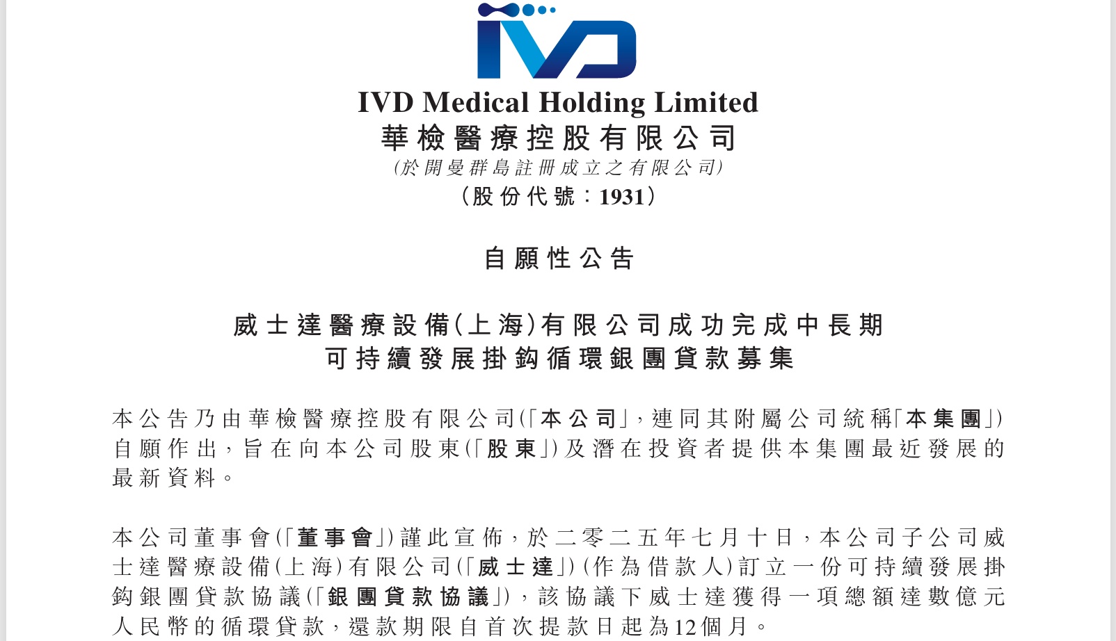 华检医疗公告直言:“银团充分肯定集团在行业领域的市场领导地位及稳健的财务表现……为集团后续融资需求创造积极条件。”