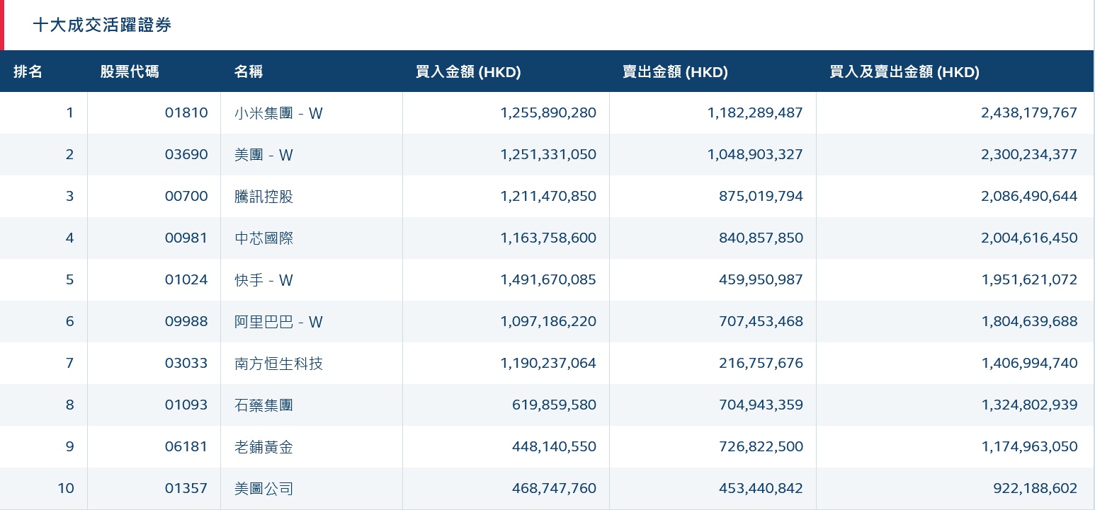 此外,小米集团-W(01810)获净买入4.41亿港元。石药集团(01093)、山东墨龙(00568)分别遭净卖出1.13亿、371万港元。