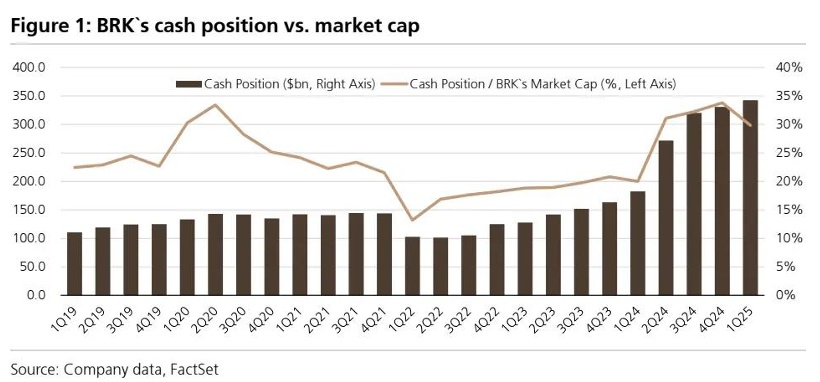 瑞银表示,伯克希尔哈撒韦GEICO保险业务将彰显超预期增长韧性,BNSF铁路运营利润率则有望实现逆势扩张,能源与制造双引擎推动伯克希尔非保险业务长期维稳,更重要的是创纪录现金储备——瑞银预计年底前该公司现金流数字将从史无前例的3400亿美元进一步攀升至约3460亿美元,带来无比庞大的并购展望空间、股债市场投资规模扩张以及股票回购想象空间,这些因素共同显现出多元化积极看涨的投资前景并且全面彰显出伯克希尔“安全避风港”这一强大的避险投资属性。
