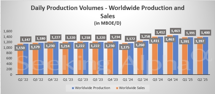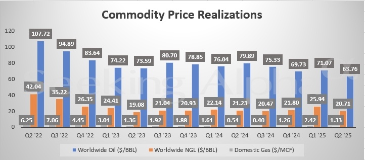 财务表现方面,天然气价格的大幅上涨为公司盈利提供了支撑。数据显示,天然气实现价格同比翻倍,达到每千立方英尺1.33美元。不过,原油平均实现价格同比下降约20%,至每桶63.76美元。这主要由于第二季度布伦特原油期货均价同比下跌约20%至每桶70美元左右,美国总统特朗普实施的关税政策加剧了全球不确定性,进而抑制了原油需求。
