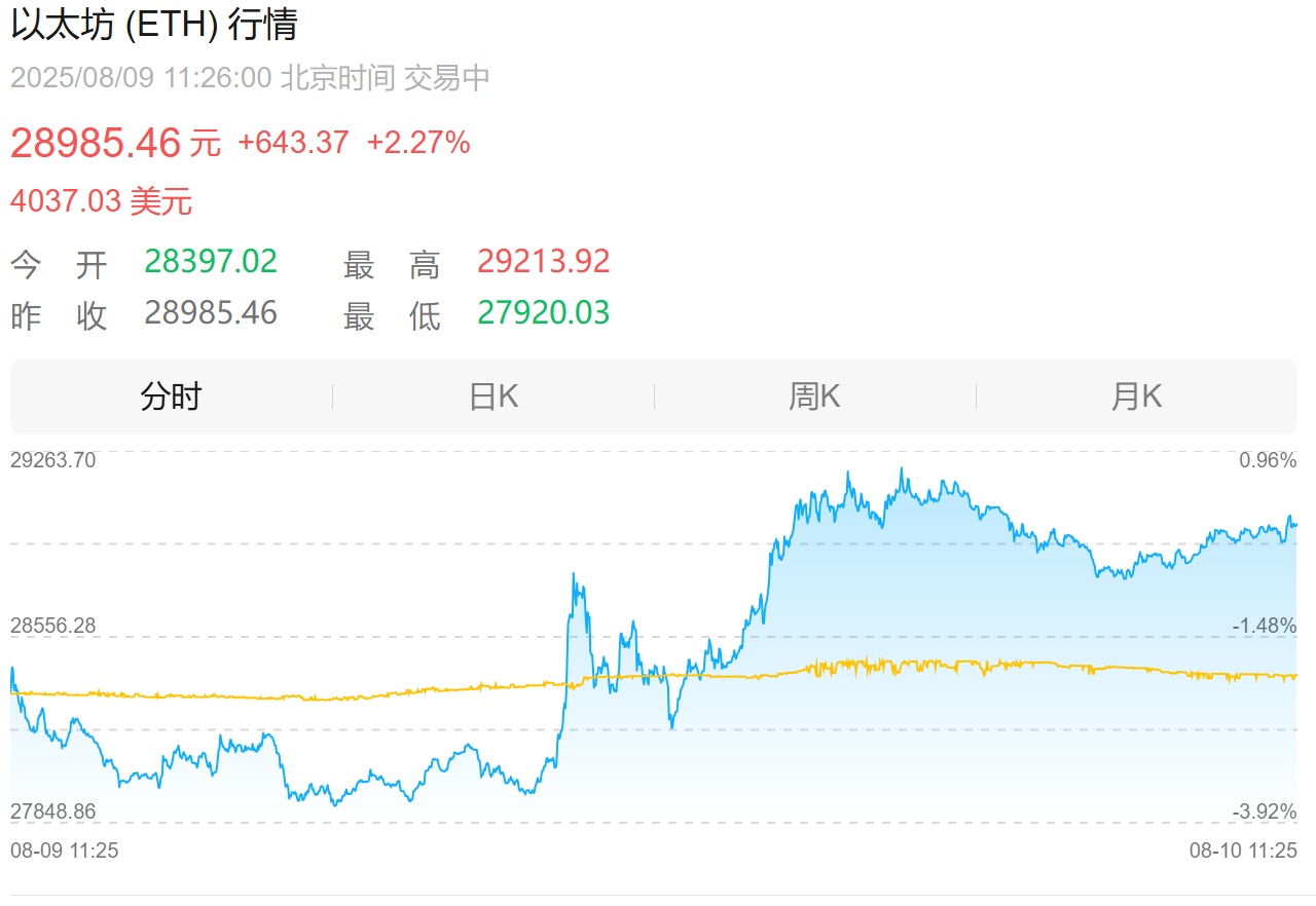 在机构投资者的强劲买盘推动下,以太币价格持续攀升。截至8月8日,以太币收市价格为4008.96美元。Fundstrat分析师将以太币的短期技术目标定为4000美元,认为其年末公允价值可达10000至15000美元。BitMine Immersion Technologies(BMNR)董事会主席Thomas Jong Lee表示:“在当前价位配置以太币(ETH),是企业财政获得10倍潜力的有效路径。”
