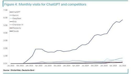 OpenAI的行动升级,势必引发竞争对手的回应。根据SimilarWeb的数据,ChatGPT目前每月访客量高达57亿,而位居第二的谷歌Gemini和DeepSeek则分别约为7亿和3.5亿。