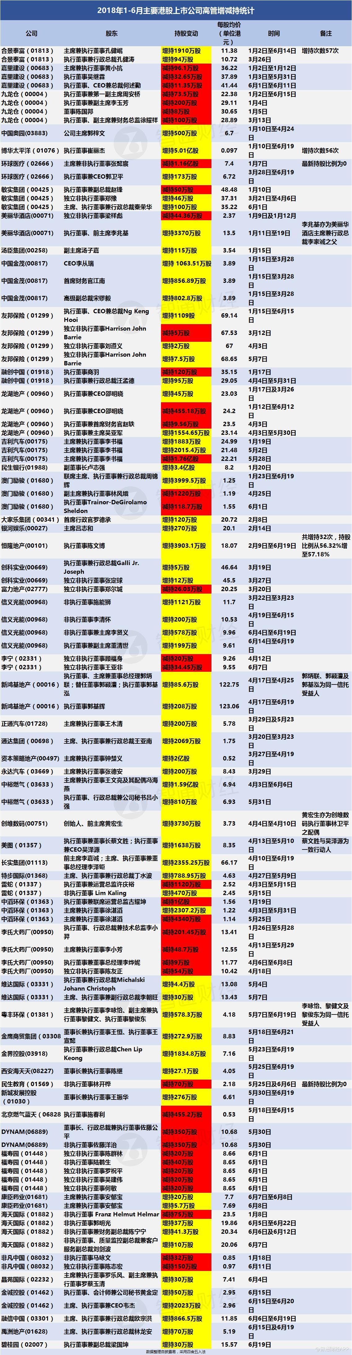 内地房企的高管也是2018年上半年增持的主力。如合景泰富(01813)、中国奥园(03883)、中国金茂(00817)、融信中国(03301)、禹洲地产(01628)及碧桂园(02007)等上市公司高管今年以来大手笔增持,背后的逻辑主要在于今年前5个月销售数据依然亮眼,以及内房板块估值依然普遍偏低。