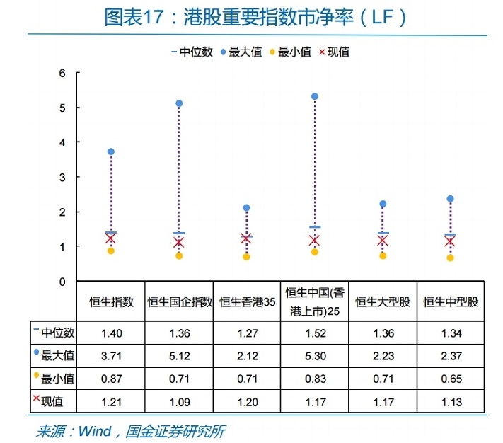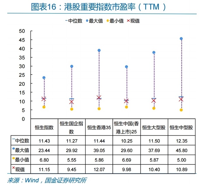 另据国金证券李立峰研报统计,当下部分涉及中资股的港股指数,均小于历史中位数。