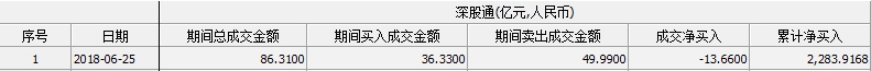 智通财经APP获悉,6月25日,37.8亿元通过沪股通和深股通流出A股,为自2018年2月6日以来最高资金净流出。其中,沪股通(北向资金)流出24.14亿元,深股通(北向资金)流出13.66亿元;沪市港股通流出0.56亿元,深市港股通流入8.32亿元。