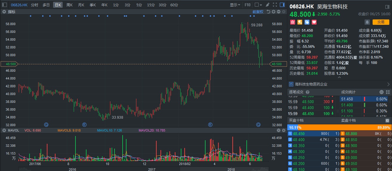 恒指不给力,医药板块偏安一隅的梦想也遭遇破灭。智通财经A观察到,截至6月25日收盘,该板块中的多只细分领域龙头股遭遇“回调”,其中,就包括生产眼科、医美可吸收生物材料的昊海生物科技(06826)。