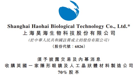 2015年4月30日,昊海生物科技奔赴香港联交所主板上市。一年后,该公司再收购了河南宇宙人工晶状体研制有限公司100%股权,然后又陆续收购了珠海艾格98%股权以及美国Aaren Scientific Inc. 亲水及PMMA人工晶状体产品业务。
