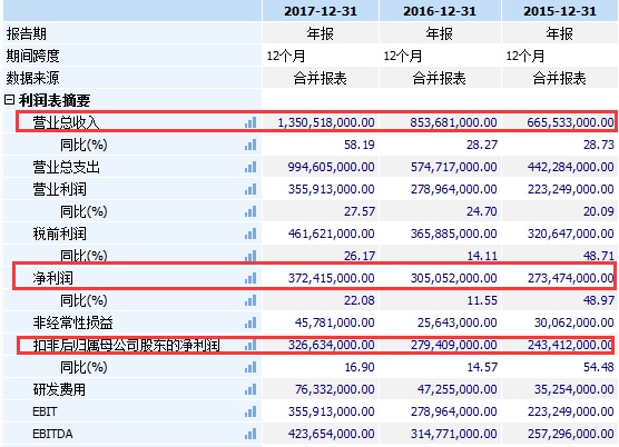 智通财经APP看到,截至2017年度业绩,该公司实现营业收入约13.45亿元,较2016年增加4.94亿元,同比增长58.0%;归母净利润为人民币3.72亿元,同比增长约22.1%(扣除收购影响,归母净利润为人民币3.85亿元);EPS为2.33元,同比增长22%。