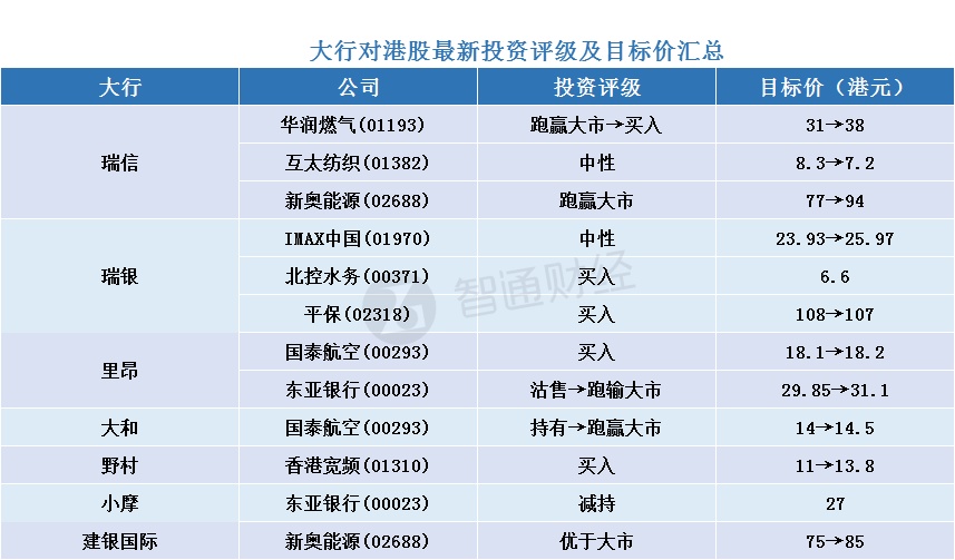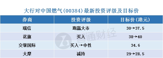 五、大行对中国燃气(00384)最新投资评级及目标价