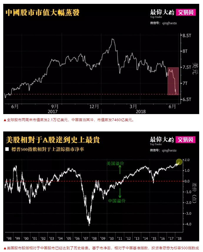 相对于美国股市,中国股市已经率先跌了一轮,现在两大股市正处两个极端: